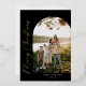 Esta tarjeta de vacaciones presenta un diseño simple y elegante y una foto arqueada con texto en papel metálico dorado. Esta hermosa tarjeta de Navidad moderna minimalista permite subir una sección con tu propia imagen perfecta al frente y atrás.