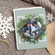 Tarjeta de vacaciones con corona y mensaje de foto personalizado y plantilla editable. Tarjeta de Navidad con foto familiar.
