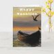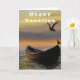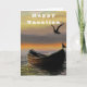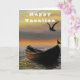 Tarjetas de vacaciones felices con barco de puesta de sol en el mar - Pintura firmada - Personalizable