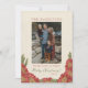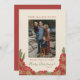 Esta elegante tarjeta de Navidad cuenta con un diseño vintage de flores rojas y vegetación con tu foto. Personalízala fácilmente con tu saludo de "Feliz Navidad" y el nombre de tu familia, y personaliza el mensaje en el reverso de la tarjeta. Ideas para incluir los nombres de los miembros de tu familia y el año. Envía comodidad y alegría navideña a tus amigos y familiares. Encuentra artículos coincidentes en la Colección de Navidad Vintage Floral.