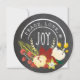 Un cálido y colorido ramo vacacional de flores recién estampadas se impone sobre un fondo de pizarra con una vintage estampada "Paz, Amor y Alegría". Sube por un pequeño DIY, golpea un agujero en la parte superior y ata una cinta a través de la cual tu tarjeta de Navidades se convierte en un adorno.