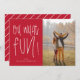 Una tarjeta de vacaciones divertida con "oh qué divertido" en fuente grande y negrita estilo manuscrita en blanco sobre un fondo rojo festivo (todos los colores son editables) y tu foto de retrato favorita.