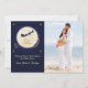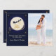 Un fondo azul de medianoche muestra la silueta del trineo y reno de Santa en plena luna blanca. "Feliz Navidad" está preimpreso en oro. Solo agrega tu foto favorita para que sea tuya.