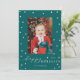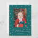 Esta tarjeta fotográfica de vacaciones de personalizable incluye un fondo festivo y tradicional de color verde oscuro y un borde de pompas de estrellas blancas y un saludo festivo feliz de moda alrededor de una foto única para un ambiente lujoso y lujoso.