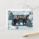 Una fantástica tarjeta de fotos de Navidad incluye ilustraciones de palomas y árboles de invierno.