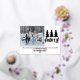 Hermoso diseño de tipografía gráfica en negrita. Combine su foto favorita de vacaciones con un elegante árbol de Navidad dorado rosa debajo de tres árboles de Navidad. Una forma maravillosa de desear felices fiestas a su familia y amigos.