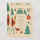 Envíe elegantes deseos de vacaciones con esta moderna tarjeta de vacaciones de estilo retro verde y rojo de mediados de siglo. Con bonito y formas geométricas elegantes, estallido abstracto funky, tipografía de inspiración vintage, pinos, pinos y bayas, copos de nieve y un encantador acento adornado, este diseño añade un estilo atemporal a sus saludos de invierno.