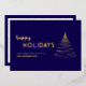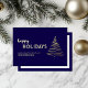 Cree una impresión duradera en sus clientes y consumidores con esta tarjeta de papel de oro moderna sin foto que presenta tipografía dorada y dibujo abstracto de árbol de Navidad en azul marino. Contemporánea, simple y lujosa, esta tarjeta de vacaciones corporativa hará que su negocio se destaque con un enfoque minimalista y elegante hacia la temporada de vacaciones y el Año Nuevo. Por favor, contácteme si tiene alguna solicitud especial para un diseño personalizado.
