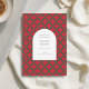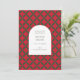 Comparte deseos festivos con esta tarjeta de vacaciones retro roja y verde. Con un elegante patrón moderno de mediados de siglo con formas geométricas audaces, acentos florales, estallidos abstractos, un estilo vintage diverso y una tipografía clásica, este diseño único aporta un encanto intemporal a sus saludos de invierno.