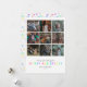 Comparte tus fotos favoritas del año pasado con esta tarjeta de vacaciones moderna y brillante. Cuenta con una cuadrícula con espacios para nueve fotos diferentes. La parte posterior de la tarjeta tiene un divertido patrón de luces de Navidades ilustradas.