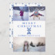 Molino de viento holandés Delft Blue "Merry Christmas", tarjeta de vacaciones de 3 fotos, con un respaldo de patrón de flor y molino de viento a juego.
