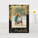 La hermosa tarjeta de felicitación plegada de vacaciones cuenta con una foto acentuada con falsos frondas de palma de purpurina dorado sobre negro en el frente y 3 fotos con tu saludo personalizado en el interior. MÁS estilos y diseños en nuestra tienda.