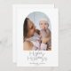 Elegante minimalista tipografía de Happy Holidays y moderno estilo arco foto tarjeta de vacaciones de invierno moderno blanco. ++++++ Fácil de personalizar con tu foto y texto de la familia!