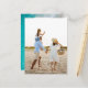 diseño elegante de tarjetas de navidades con una combinación de diseño de letra negrita y guión, espacio para la foto elegida delante con gráficos de playa y mar al revés