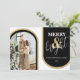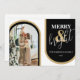 Estas tarjetas de navidades retro minimalistas son perfectas para enviar a los navidades sus deseos de vacaciones. Las tarjetas están decoradas en un estilo retro con tonos negros y dorados. Una plantilla moderna de navidades para saludar, tu foto enmarcada con arcos en modernos tonos negros y dorados. Los estilos y el color de las fuentes se pueden cambiar haciendo clic en el enlace posterior del personalizar después de personalizar.