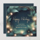 Elegante tarjeta de vacaciones corporativa. El diseño moderno presenta una corona festiva y luces sobre un fondo verde oscuro. Utilice las herramientas de diseño para personalizar el texto, la fuente y el color. Agregue fácilmente el logotipo de su empresa. También disponible como descarga digital.