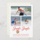 Este diseño presenta Navidades campanas de jingle fotográfico de vacaciones, collage multifoto de 3 tres, foto familiar graciosa y graciosa, lindo y divertido guión elegante de caligrafía, estilo tipográfico creativo y caprichoso, Navidades adorno con cinta roja, Navidades tarjetas de felicitación de fotos de vacaciones, decoración de castillos dorados dorados, escritura moderna única de tipografía, tarjetas de fotos de vacaciones minimalistas