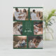 Tarjeta fotográfica de vacaciones con seis fotos con espacio para un mensaje personalizado y el nombre de la familia en un alfabeto moderno con fondo verde