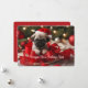 ¡Celebra la temporada con el saludo navideño más dulce! Esta tarjeta de Navidad presenta a un adorable cachorro de pug con un sombrero de Santa, envuelto en una cinta roja festiva, y sentado frente a un árbol de Navidad brillante. Perfecta para amantes de los perros, dueños de pugs o cualquiera que aprecie un toque de fantasía durante las fiestas. Una forma encantadora de difundir alegría, esta tarjeta es ideal para amigos, familiares o colegas, garantizada para hacer sonreír.
