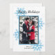 Felices Fiestas por © Cathy Thompson es un diseño clásico de elegantes copos de nieve azules sobre un fondo blanco nevado. Agrega tu propia foto y hazla personalizada con la plantilla que está configurada para ti.