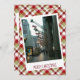 State Street, Chicago, Illinois (EE. UU.) está completamente decorada para las fiestas de Navidad. Esta es una fotografía que tomé, mirando hacia el norte, en State Street, alrededor de la década de 1980. La foto tiene un marco blanco y está sobre un fondo de cuadros rojos. Todas las áreas de texto se pueden personalizar.