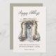 Guión moderno "Happy Holidays" acuarela de la puerta principal decorada con una imagen de verdor de vacaciones y espacio extra en la parte trasera para mensaje personal tarjeta de vacaciones plana.