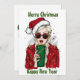 Tarjeta de vacaciones de niña bonita con sombrero de Santa