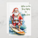 Tarjeta de vacaciones plana Surfing Santa