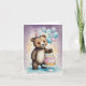 Celebra el día especial de alguien con esta adorable tarjeta de cumpleaños que incluye un oso listo para el fiesta que sostiene globos y una torta de cumpleaños en capas. Con un gorra a rayas fiestas y rodeado de festivos salpicaduras de acuarela, este encantador oso hará sonreír tanto a niños como a adultos. Los suaves tonos pastel y el estilo pintado a mano le dan un toque alegre y caprichoso. El mensaje interno incluye un alegre "Feliz Cumpleaños" y puede ser personalizado con tu propia nota sentimental.