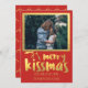 Tarjeta de vacaciones Red Gold Merry Kissmas Photo