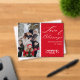 Esta tarjeta de vacaciones es aún más única, con acrílico transparente asomando entre la foto y los saludos. Centrada en el lado izquierdo de la tarjeta está la fotografía vertical de la familia. En el lado derecho de la clásica tarjeta de vacaciones minimalista hay un fondo rojo rico y bayo con elegante letra blanca que dice "Amor y bendiciones de nuestros corazones a los suyos". Es fácil personalizar con una fotografía familiar, el nombre de la familia y el año en curso. Exclusivo de esta tarjeta es la superposición de texto sobre texto con el nombre de la familia y el año detrás que da un efecto de profundidad único. Puedes elegir entre muchas combinaciones de colores. Puedes visitar la creciente Colección en esta página de producto, o la página de inicio, para ver más opciones de diseño.