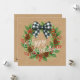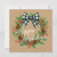 Esta hermosa tarjeta de vacaciones exhibe elegantes acuarelas de una corona adornada con un arco a cuadros de búfalo blanco y negro, piñones, hojas huecas, bayas rojas y agujas de pino. Su elegante y rústico diseño capta la esencia de la temporada de vacaciones de diciembre y atrae a los que aprecian los ilustraciones artísticos. La tarjeta ofrece opciones de personalización, que le permiten personalizarla con el nombre de su empresa, el nombre de su familia o los nombres individuales, e incluye un poema de bienvenida estacional a medida en la parte trasera, lo que lo convierte en una opción para difundir alegría por las vacaciones.