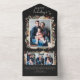 Tarjeta de vacaciones triple negra. Simplifique sus saludos de vacaciones con nuestra tarjeta de envío y sello todo en uno de la colección de tarjetas de vacaciones de Navidades botánicos Black Boho. Esta tarjeta, con un diseño de collage de fotos para cuatro fotos personales, combina comodidad con encanto festivo. Personalízalo con tus momentos de cariño y crea un saludo de vacaciones memorable.