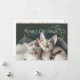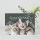 Tarjeta de plantilla de fotos de gato para Navidades inteligentes con un texto gracioso que dice "Navidades Meowy". Añade fotos de tu gato en esta tarjeta de marco de arco verde. Hay un ilustracion de arco.