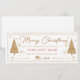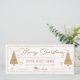 Vale de regalo de Navidad dorado con árboles de Navidad, diseño de regalo y campana