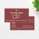 La tarjeta de vale de regalo del Día de San Valentín para peluquero moderno es parte de la colección de tarjetas y artículos de marketing de Burgundy White Hair Salon Biz. Esta tarjeta en formato horizontal presenta texto blanco sobre fondo burgundy con dos corazones. El logotipo y el nombre del salón están alineados en el centro superior, con el texto "$10 Vale de regalo del Día de San Valentín" en la parte inferior.