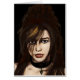 Una pintura digital de un vampiro con el pelo castaño colorido y un cortador inclinado por la flecha.