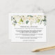 Acuarela Marfil White Floral Greenery Boda Detalles Tarjeta de inserción incluye rosas blancas de marfil y vegetación botánica.