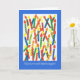 Tarjeta de cumpleaños de colores vivos con velas y "cumpleaños feliz" en danés, de un collage de papel pintado a mano de Judy Adamson.