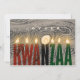 Las letras de KWANZAA son velas encendidas sobre un fondo ondulado de madera.