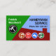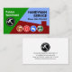 Un diseño especial con trapecio para representar el árbol (verde), el cielo (azul) y el techo (chimenea en el techo). En la parte superior está tu prestigioso nombre junto a un logotipo de martillo plateado que puedes usar. A la derecha está el nombre comercial "HANDYMAN SERVICE" con el contacto telefónico. Cerca de la base se encuentra un diseño de herramientas muy práctico que puede representar algunos de los servicios que ofrece, por ejemplo, la cinta de medida de taladros para reparaciones-remodelación del hogar, etc. Al dorso, en una cubierta blanca, el logotipo del martillo está en la parte superior seguido por el nombre comercial y sus datos de contacto. Una gran tarjeta hecha para los artesanos, los techos y los contratistas de construcción. #handyman #Construction #constructor #contratista #remodelado #constructor #homerepair #handymantools #homerepaircontratista #azotador