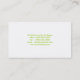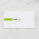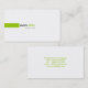 Un diseño moderno con un rectángulo verde centrado al lado izquierdo en un fondo blanco con el texto negro para el nombre y el verde a juego para el apellido. El color de fondo blanco se puede cambiar al modificar para requisitos particulares, tecleo "corrige" entonces el "fondo" entonces elige su color. El color y la fuente de texto pueden también ser cambiados. La información adicional en verde a juego está en el lado trasero de la tarjeta.