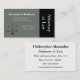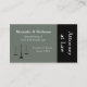 Ilustracion clásico de la escala de justicia sobre fondo gris verde claro con textura falsa. El lado derecho es negro con texto de lado para un aspecto único y moderno. Todo el texto es personalizable. Use la parte posterior de la tarjeta para obtener información sobre la cita o su información de contacto. Esta tarjeta profesional es perfecta para abogados, abogados, jueces, reporteros judiciales, auxiliares jurídicos, notarios públicos o cualquier otra profesión jurídica.