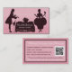 Ofrezca sus servicios de restauración con esta tarjeta de visita para la planificación de eventos de boda que incluye una silueta vintage de un futbolista que sirve a una dama de calidad contra un patrón de damasco de color rosado. Personalice agregando el nombre del proveedor de bodas. Permita que los clientes programen una consulta mediante una respuesta rápida agregando su propio código QR de sitio web único al reverso. Si no tienes uno, puedes usar un generador de código en línea.