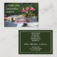 Tarjeta de visita para Fiestas y eventos especiales para comidas diseñada para asistentes, catering de eventos, servicios de Chef, panaderías, restaurantes, Bodas y más. Creada con una mesa de fiesta al aire libre y una ráfaga de tulipanes rosados en frente, y un fondo verde profundo, con texto blanco en el reverso, esta carta aporta un toque de elegancia informal. Para personalizar, simplemente inserte sus detalles en nuestra plantilla paso a paso, reemplazando el texto de ejemplo.