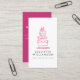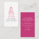 Una tarjeta de visita limpia, profesional y moderna para los pasteleros y los amantes de los postres. Este diseño presenta una caprichosa imagen a mano de una torta de tres niveles en color de agua rosa y detalles de negocios en gris oscuro, contra un brillante fondo blanco. El reverso de la tarjeta tiene un fondo de fucsia y tus datos de contacto e iconos de medios sociales (también extraíbles haciendo clic en "personalizar") en blanco roto.