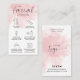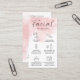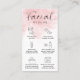 Tarjeta de negocios para el cuidado de la postratamiento facial femenina con fondo de color rosa rubor. Esta tarjeta de instrucciones de cuidado facial estético rosado incluye iconos de cuidado para cada paso, un tipo de letra de guión y espacio para su logotipo de salón y detalles de contacto - la adición perfecta al diseño de su papelería de negocios.