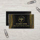 Una tarjeta de negocios de diseño de ágata para purpurinas de color negro y dorado para un negocio de perfumes o aceites esenciales.