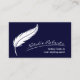 Notary Loan Signing Agent Quill Signature Navy Blue Plain Business Card.