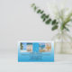Tarjeta de visita con una selección de fotos de temática tropical de playa sobre un fondo blanco y azul turquesa. Al fondo hay espacio para tu propia foto o un código QR. Ideal para una agencia de viajes o para un blogger de viajes, y para cualquier otro propósito de personalizable.